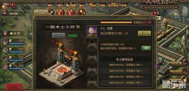 完成“击败关兴”任务后,在点券商城内购买工坊图纸建造一级工坊,在术士工坊中可使用木材生产免费借兵次数;