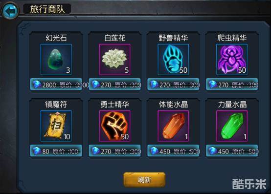 ²若未到刷新时间,玩家可消耗50钻石对旅行商队进行刷新