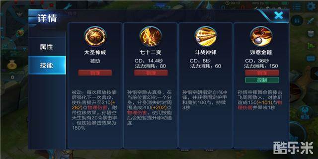 每次释放技能后强化下一次的普通攻击。并且附带中远距离位移,而且可以打出暴击。使得孙悟空在前期就具有强力的威胁。但是暴击效果只有初始效果的150%。