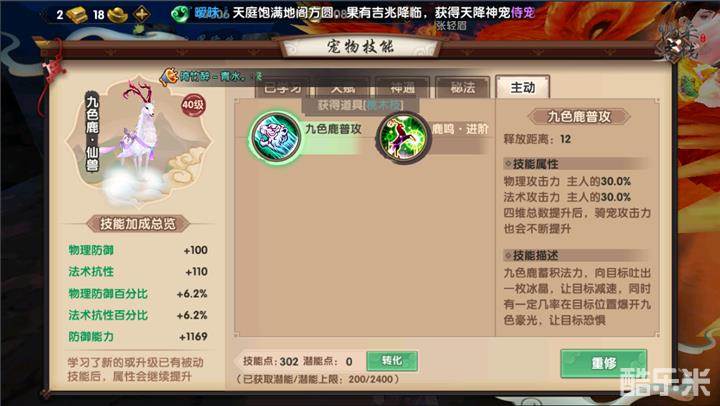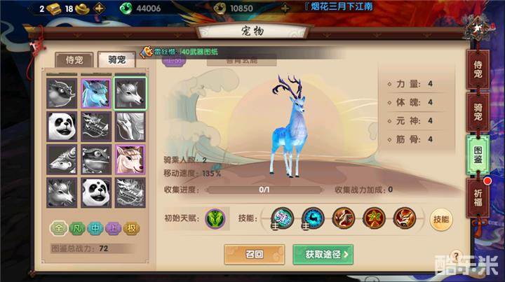 九色鹿:商城6880仙玉购买,因其普攻有几率令敌人恐惧,所以在PVP里有着很高的地位。
