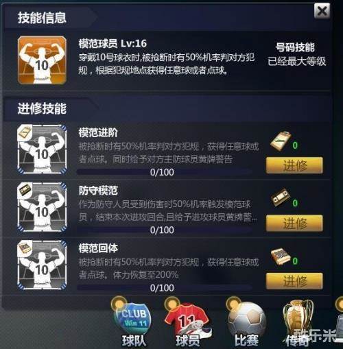 1.模范进阶:50%机率触发模范球员后,对方主防球员受到黄牌警告