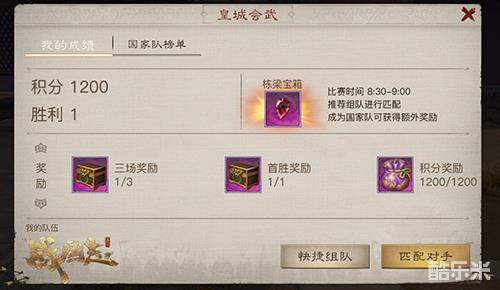 《战国志》皇城会武玩法将在每周三和周日晚上8:30-9:00开启,各位将军可以选择组队前往,或个人前往参与比赛。在会武开始后,将军们各有3分钟准备时间,此时匹配区会刷新多个宝箱。而在会武正式开启后,各位将军即可组队或自行匹配对手,若战斗胜利则加分,若失败则减分,最终参与比赛达到三场、首次取胜、达到一定积分均可获得大量奖励!
