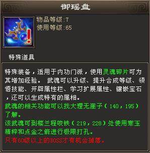 大量经验、新莽神符、职业套装、金蚕丝、活跃值,60级以上的BOSS有机会掉落武魂:御瑶盘、琉璃焰。