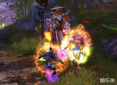当BOSS血量下降到一定比例时,开始释放技能:修养生息,立即刷新6个同心竹NPC:同心竹o白,同心竹o紫,同心竹o黄,同心竹o绿,同心竹o红,同心竹o蓝。此时,两个BOSS同时获得状态:免疫外、内、玄、毒、火、冰伤害。