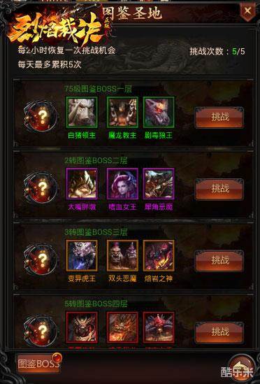 在游戏中,还有个神秘的地方名为图鉴圣地,可以产出各种图鉴卡牌。在图鉴圣地,共有5个不同的副本,玩家满足相应的等级需求才能进行挑战。副本每2小时恢复一次挑战机会,每天最多累积5次。