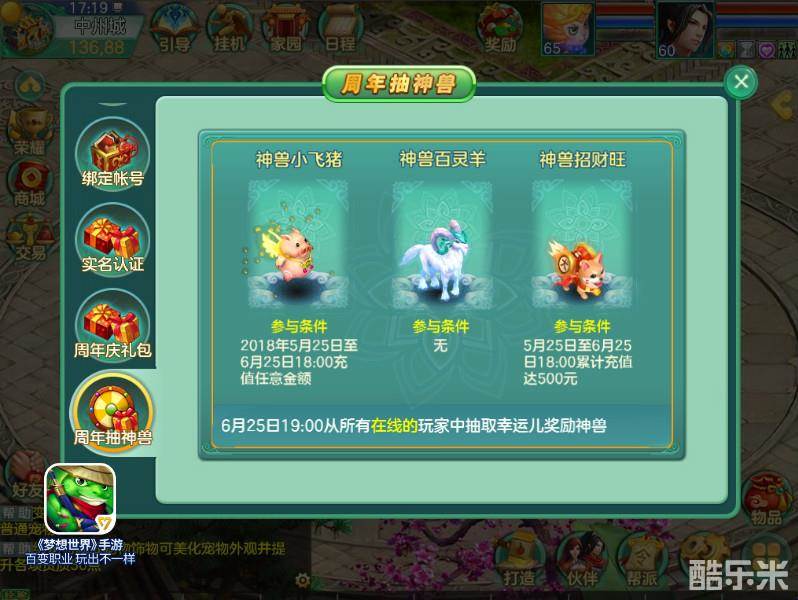 三周年庆典《梦想世界》手游神兽抽奖普天同庆