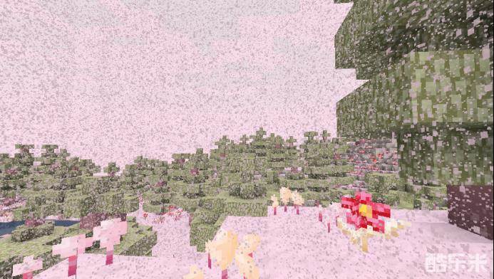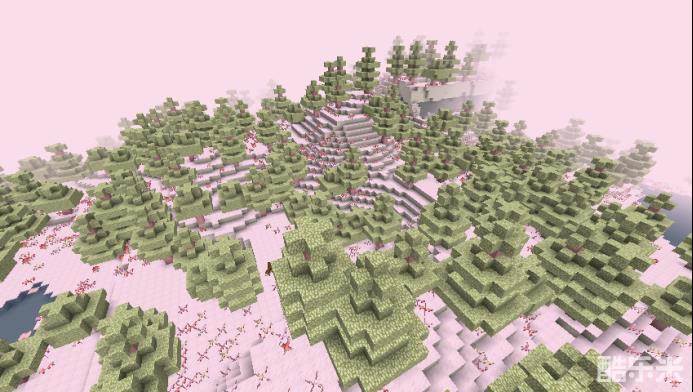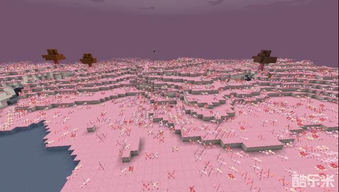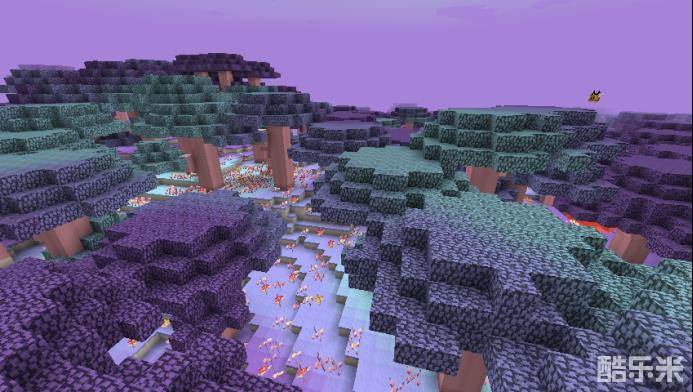 长满高大棉花软糖树的魔法森林。这里的树长得都和深色橡木一样茂密,树叶也是如同梦幻般,从紫色带青蓝色渐变。