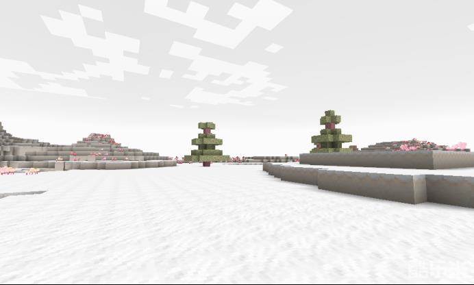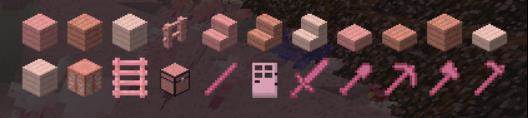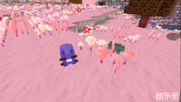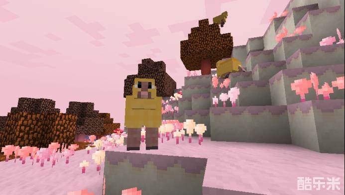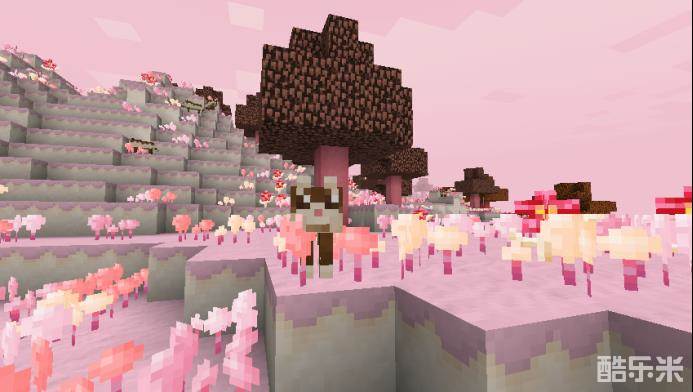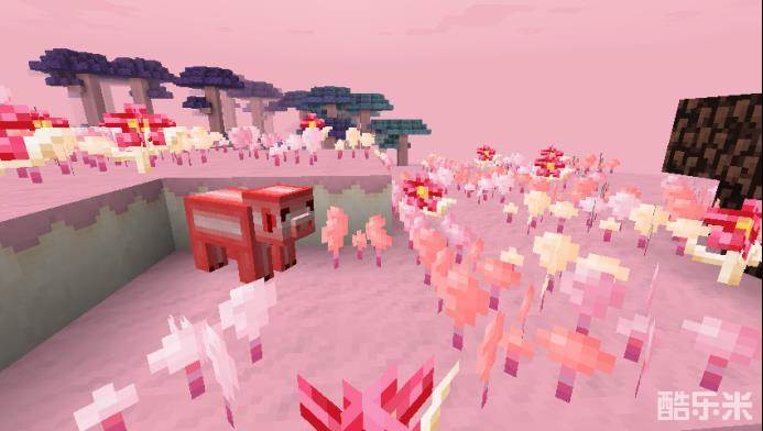 糖果世界也会生成很多树,这些树和主世界的树挺像的,不过它们都拥有好吃的名字——棉花软糖树。这些树也能砍下了,做成各种各样的工具、箱子、楼梯、台阶、木棍、栅栏等等。这些闪耀着粉色材质的东西,总给人一种暖暖的感觉。