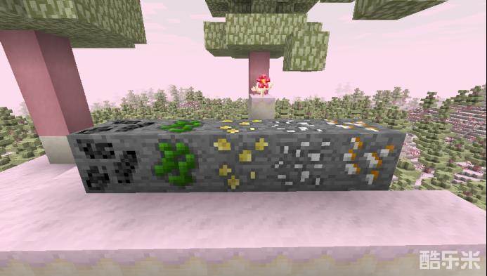 这个糖果世界除了地面,地下都是传统的石头,里面也会间或的夹杂矿石。