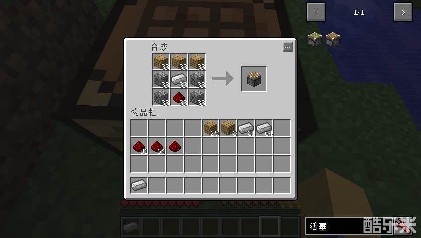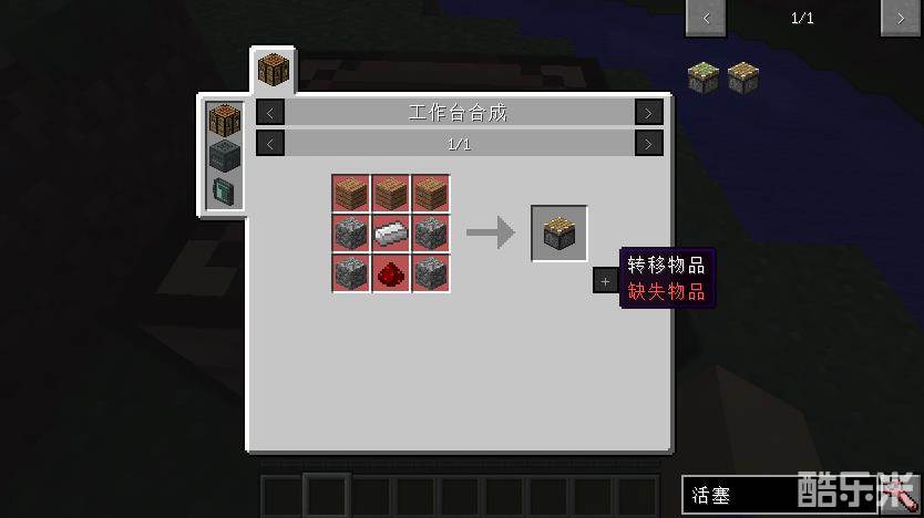 就可以看到,侧面栏目中列出乐活塞和粘性活塞这两个物品。