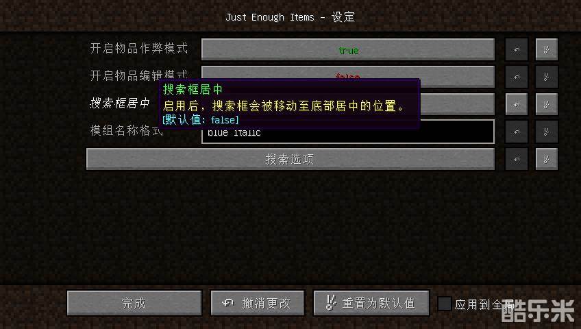 设置为true以后,JEI的搜索框将会置于界面下中部分。