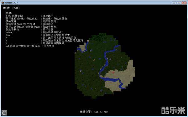 在主界面,玩家同样可以看到光标所指的坐标和所在的生物群落,由于截图并没有截取到鼠标,所以看官可能不能很好的感受到这个功能,具体还请游戏内体会啦。左下角的准心可以快速帮助玩家定位自己所在的位置。