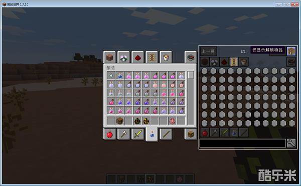 在物品栏中右方提供一个GUI,可通过点击物品图标来查阅该物品合成/冶炼/酿造的制作方法。值得关注的是,除去该类组件都有的合成功能,本组件特意加入了显示当前解锁物品这一项功能,即根据你背包内的材料自动判断你可以进行什么样,或者说合成素材中包括背包物品的高级物品制作。这一点可以说对新玩家十分友善。