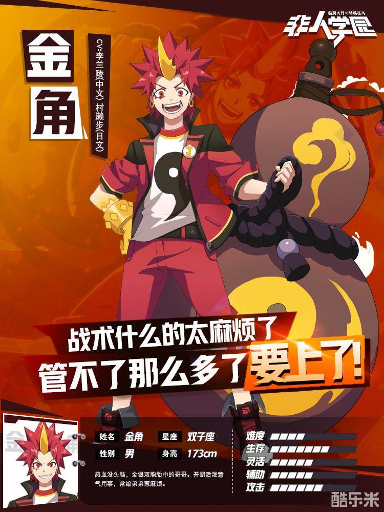 虽然没头脑,但是金角在学园战场上的定位,却是主法术伤害的灵能!技能除了有法术加成外,当前法力值的加成是金角最大的特色,堆叠法力值是金角提高伤害能力的有效手段,并从这一特点衍生出与其他法系玩法的不同。