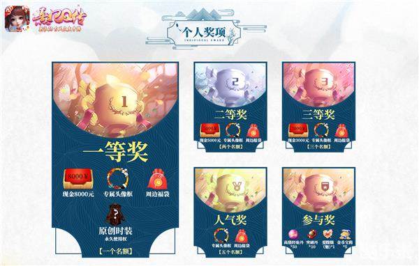 一等奖(1名):现金8000元+专属头像框+周边福袋+原创时装永久使用权