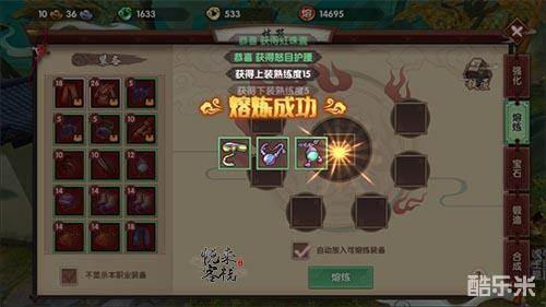 熔炼呢,主要是将不需要的多余装备荣连成道具或者熔炼值,当然低品质的装备像白装、蓝装、绿装、紫装和一些橙装将会直接变成熔炼值,不过在变成熔炼值的时候有几率额外获得一件品质稍高的装备,并且也有可能获得一枚凝汽石,也就是强化石啦。熔炼低品质装备能获得的熔炼值也会根据品级不同而不同,品级越高给的熔炼值也就越高,也就是白<绿<蓝<紫<橙,而除此之外,熔炼值的多少也跟等级有关,每过10级会有一个提升,比如20级便会比10级多出不少熔炼值,所以说选择挂机场景时,一定要选择等级相对高的,这样掉出的装备等级也偏高,获得的熔炼值便会更多。除了这些以外,高品质的例如金装和红装也可以进行熔炼,只不过这些装备熔炼后会变成素材返还给仙友,虽然不如打造是的多,不过也可以多少换回一些素材,也还是不错的。当然有些打造书也是可以熔炼成素材的哦。