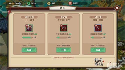 当然在熔炼系统当中也有另外一个系统,叫做铁匠打造,铁将打造系统会随机出现三件装备,这三件装备随机品级,等级与仙友等级阶段相等,花费一定的熔炼值可以在这里打造出一件装备,打造一次之后就可以点击刷新刷出新的三件装备,刷到第十次的时候,会出现幸运刷新,幸运刷新会出现品级较高的装备。在这里打造装备虽然都是些素材装备,但是提升的锻造等级还是非常可观的,花一点点熔炼值就可以提升几十点锻造经验,这样是非常划算的,所以仙友们可一定要熟练掌握打造技巧哦。