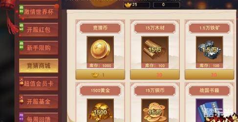 在这次,《汉王纷争》开发组为城主们准备了诚意满满的竞猜好礼,城主们可以使用竞猜币在竞猜商城中兑换各式各样的实用资源,为城主的征战之路助力!