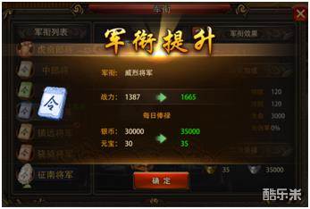 其次,军衔可以对全体武将提供各种属性的加成,增加战斗力评分;
