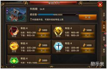 军团科技殿从军团创建开始就自动产生,通过军团全体成员进行军团建设,来提升科技殿的等级。