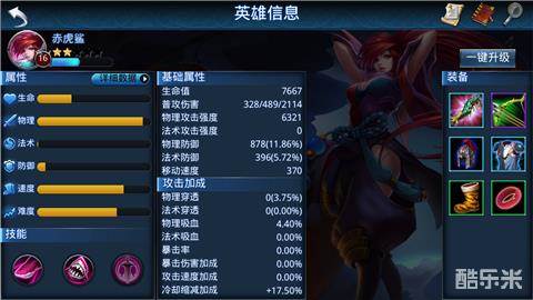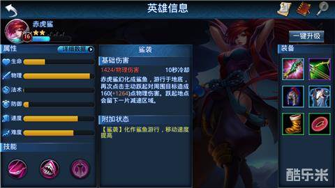 赤虎鲨的物理强度增长17 属于非常高的成长,配合大招超神根本停不下来。