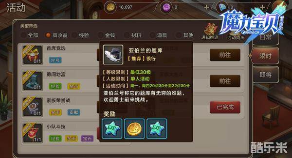 《魔力宝贝》无穷的难题?亚伯兰的题库活动攻略