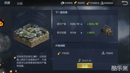 5.建造队列通过元宝购买,最多可以同时升级三个建筑。