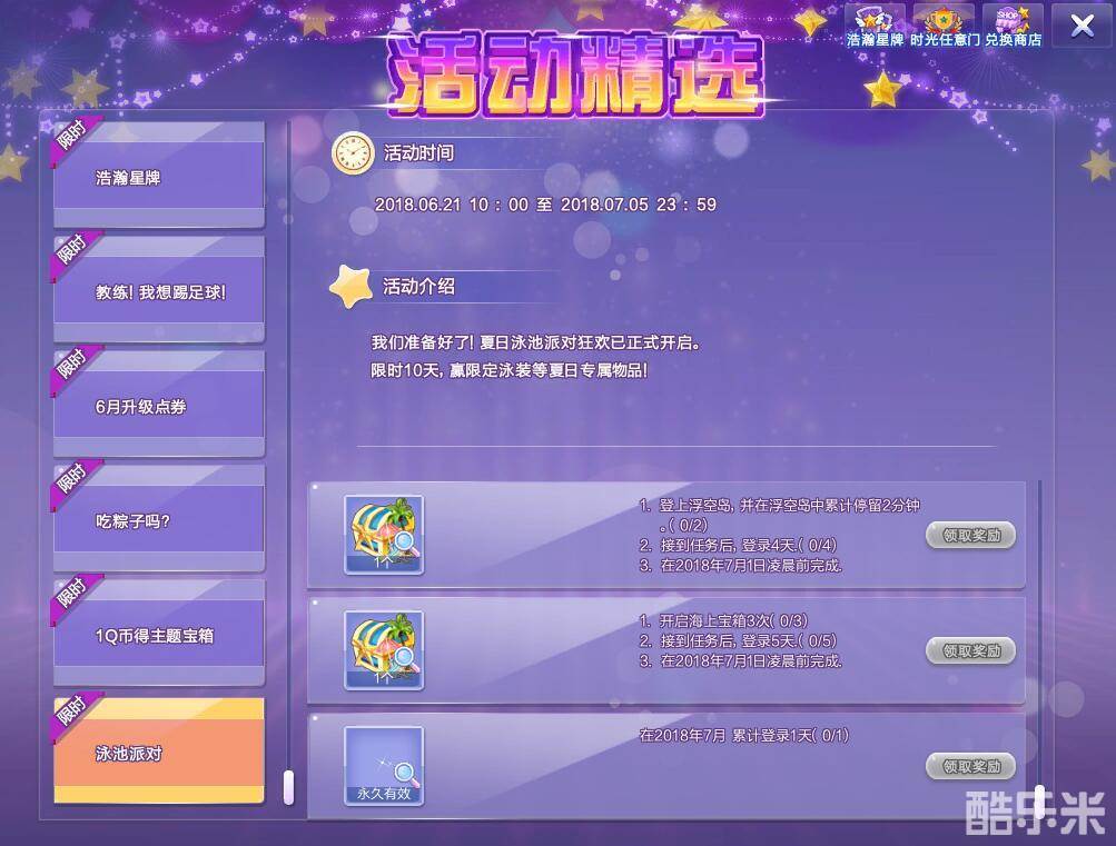 6月21日-7月5日期间,前往游戏内活动精选,完成泳池派对系列活动,即可获得夏日自由行礼盒,开启必得永久夏日限定物品!