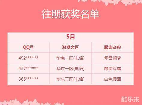 在活动页面,大家可以看到往期获奖玩家所取的服饰名称,在这里让我们恭喜5月贵族服饰命名活动的获奖玩家。
