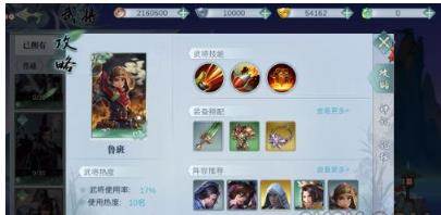 鲁班是一个一星精良级武将,技能方面,一技能不仅能够给敌人造成伤害,同时还能够回复自身血量,攻防一体,加强了鲁班的生存和续航能力。二技能也是单体伤害,并且有大概率附加追击效果,能够造成多次伤害,单体输出能力还是非常不错的。三技能被动技能,攻击的时候能够给鲁班自身叠加攻击力,多达50%的攻击力叠加还是非常恐怖的,战斗越久,鲁班输出越强。