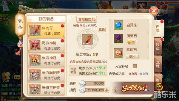 而在启灵过程中还要注意镇灵石与幸运石的使用: