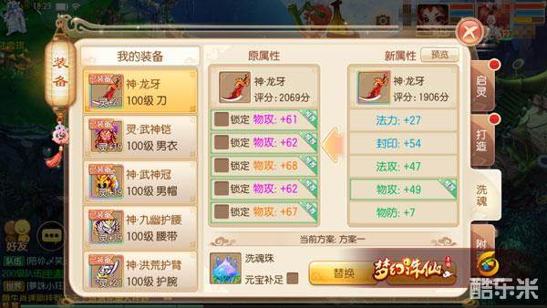 除了启灵可以给装备带来大量属性加成,洗魂也能达到同样的效果,并且由于魂属性可随意搭配,从效果上来看要比启灵更佳。