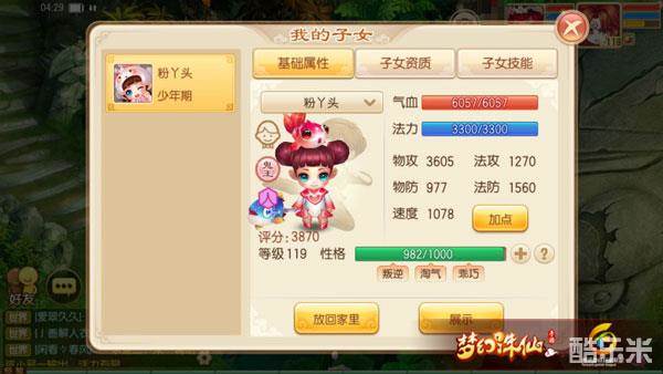 尽量提升子女装备的等级,因为子女装备等级可以解锁子女门派技能。然后使用灵窍丹慢慢培养资质,先从物攻开始,毕竟攻击力是我们最重要的,然后尽量的把子女资质吃高,青云志给很多成长快乐,基础高了属性自然就提升了。