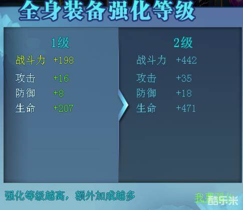 游戏中,玩家消耗材料强化装备,提高装备的强化等级。装备强化等级越高,加成属性越多。