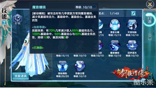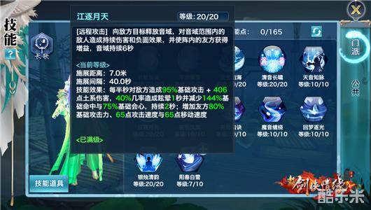 从长歌的全技能来看,这是一个技能围绕着“BUFF”而生的门派。其主动<清音长啸><江逐月天>和被动技能<魔音缠绕><回梦逐光>可以给给对手造成负面状态和属性效果。很明显其门派核心是辅助控制,并不是主力输出。不过长歌的输出能力也不差,两个输出型技能都能够带来大量的伤害。在各种活动中,长歌要充分发挥自己的优势,给队友加好BUFF,提供“基础攻击力、基础全系抗性、反弹近战伤害和反弹远程伤害”属性,给敌方带来各种负面效果、控制效果以及禁疗效果。