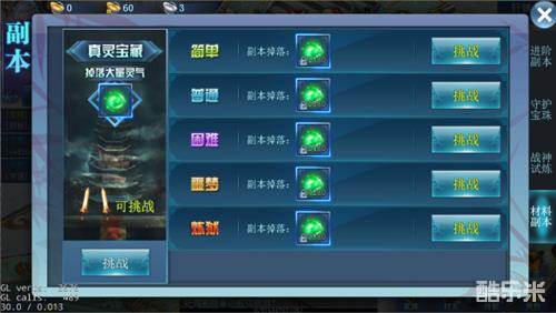 每种材料副本有简单-炼狱5个难度的副本,玩家达到相应等级即可挑战,挑战成功并相应奖励。