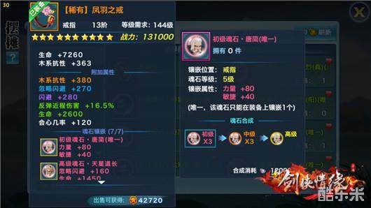 唐简作为一颗五级魂石,比较稀有,价格也会比较高。如果是任性型少侠,可以选择购买并合成金色,如果是经济型少侠,可以选取一些价格相对低廉的魂石代替唐简。
