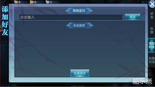 游戏中,添加好友的方法有两种!点击玩家角色后出现玩家头像,点击头像可将对方加为好友;点击添加好友,输入玩家角色名点击添加可将对方加为好友