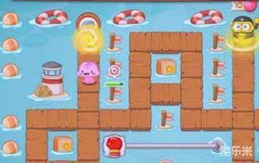 5.接着会打掉左侧的金库障碍物,获得的金币用来升级两个章鱼。之后如上图再做1个拳套,将上方的金库障碍物打掉获得章鱼升满级。接着就是升满级左侧的2个蘑菇。