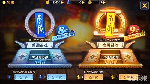 召魂消耗:普通召魂消耗普通召魂符、高级召魂消耗高级召魂符。或每隔22小时免费普通召魂一次,每隔46小时免费高级召魂一次