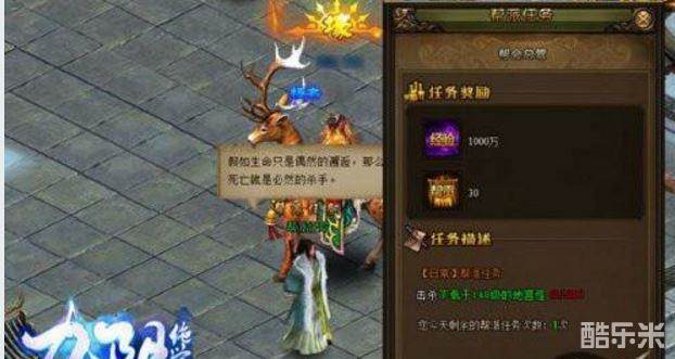 帮派任务奖励:除击杀怪物本身获得的经验值收益外,可以获得1000万经验值(视人物等级而定)和30点帮贡的奖励。