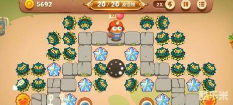 2.、期间如果有钱了,可以跟上图一样建两个冰冻星帮助防守。这样可以平安的度过几波。控制太阳花迅速拿下宝箱。