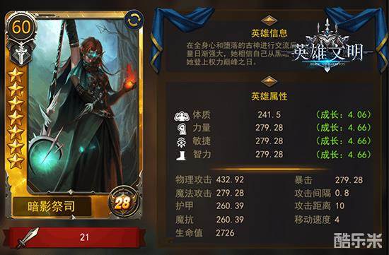 暗影祭司,智力型英雄,身份设定原是暗影教派的领袖之一,是个权力的追逐者。同等级下,智力型英雄是单次输出最强的英雄类型,且攻击距离最远,攻击间隔也只是仅次于敏捷型英雄。当然这类英雄都超级脆皮。