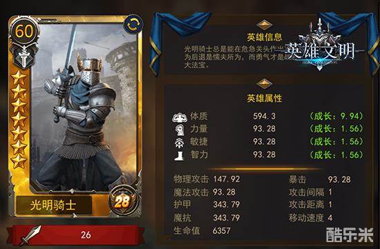 光明骑士,拥有所有英雄中最正面的形象,是个防御型英雄,当然就是最肉、最能抗打的。但是攻击距离最短,输出也不高。但是有的时候,就是需要这种能进行持久战的部队,才能应对多变的战争。