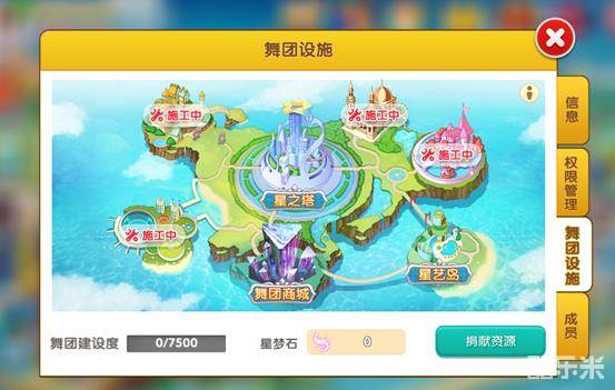 通过星之塔,小伙伴们可查看当前舞团的等级、建设度相关信息,星之塔等级的高低决定着其他舞团建筑的等级。