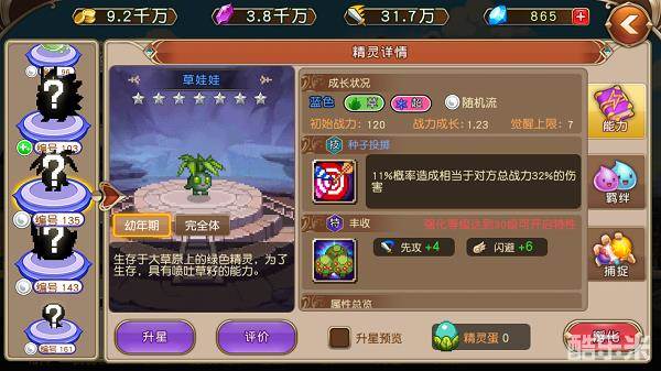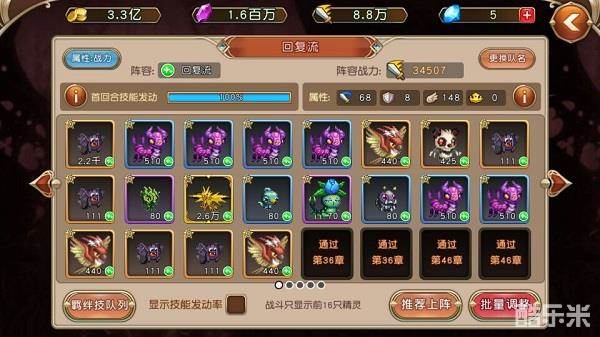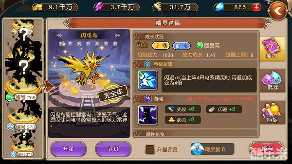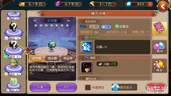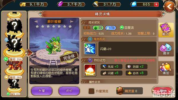 一般来说同学们抵达二十六章的时候会有20个卡位,除了上面说的几个加闪避的精灵以外,可以看到通关的阵容里面有的同学还加入了小吸血蝙蝠等草系或者生命偷取的精灵,闪避加吸血,增加容错率(鼓掌)……有闪电鸟的童鞋就更舒服了,可以在阵容里面放四只电系精灵,闪避骤升4倍,就很IMBA……