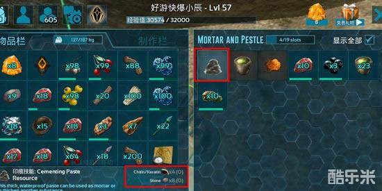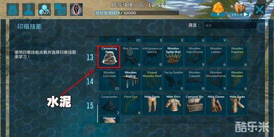 印痕制作:水泥制作可以在13级解锁,需要到研钵里制作,每块水泥制作需要4个甲壳素或者角质