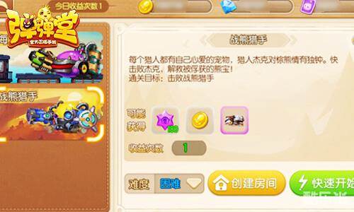 每个猎人都有自己心爱的宠物,而猎人杰克对棕熊情有独钟,为此,杰克捕获了大量弹弹堂世界的棕熊。《弹弹堂手游》坐骑副本“战熊猎手”,玩家需要在荒野群山的悬崖上与BOSS杰克进行最终决战!在击败杰克后,有几率解救被它捕获的棕熊坐骑“装甲战熊”。