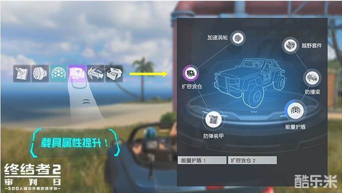 正如枪械、背包等道具对于玩家的重要性一样,载具也可以借助道具大幅提升战力。“飞车大作战”玩法中,道具分为玩家道具和载具道具两大类,玩家道具使用方法不变,而载具道具则需要装载在载具道具槽上点击后使用。