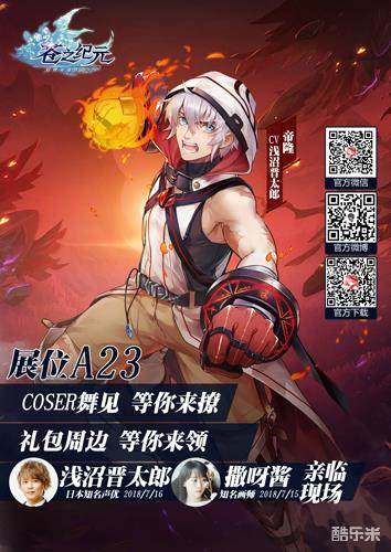 除了能在展位与浅沼晋太郎近距离见面外,《苍之纪元》所在的A23展位更有无数惊喜等着大家!绘制但丁立绘的网络高人气画师撒呀酱更会在7月15日下午到场,为玩家现场作画与签绘,而且更有高颜值coser小姐姐等你来撩~